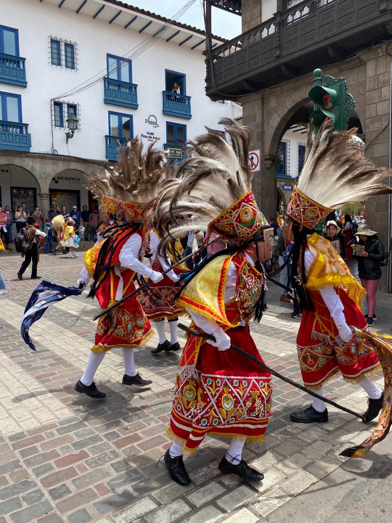 The next day, we flew to Cusco and settled in to the prettiest but noisiest hotel ever; we had thought the side street would be quiet but nowhere is quiet in Cusco! After paying for our trek and getting a SIM card, we puffed our way to bed. We’d read lots about altitude sickness but it’s still been a bit of a shock. A short uphill gives a heart beat of 154 and a feeling like you’ve just run a sprint and when linked with a headache it’s a challenge so we’ve kept popping pills.