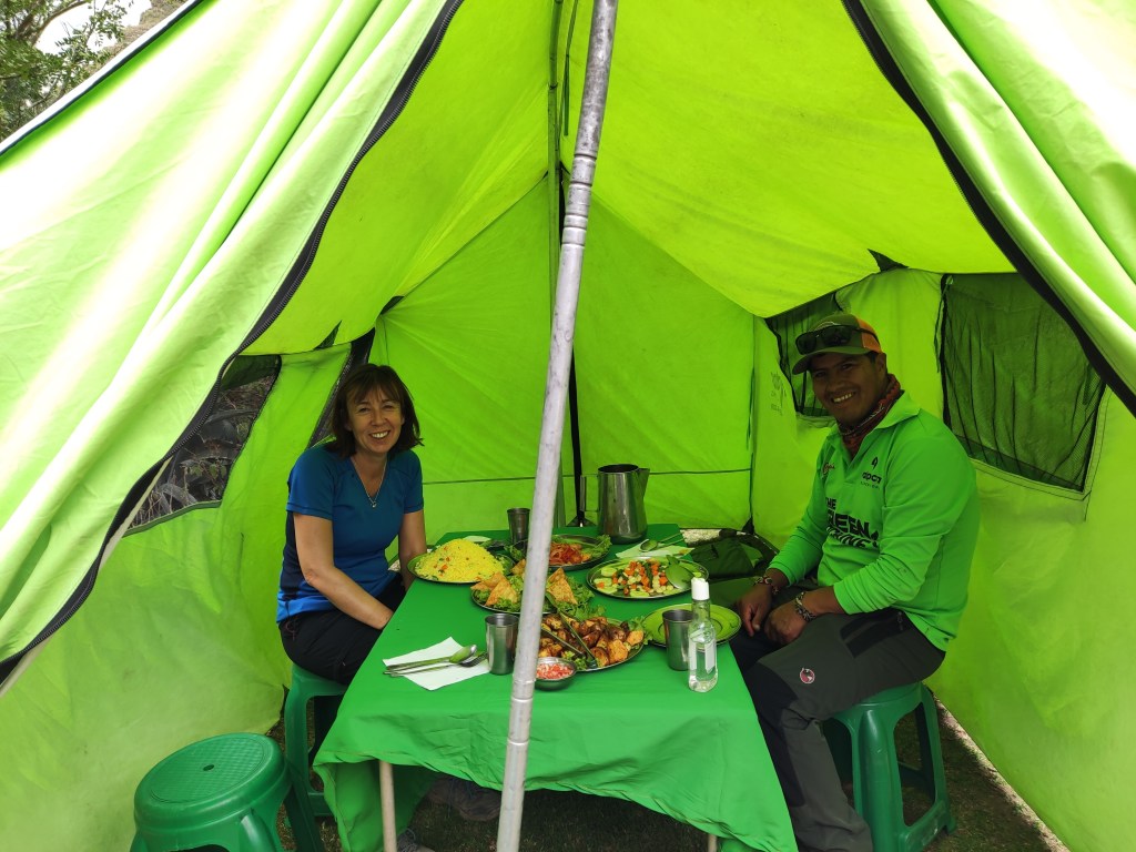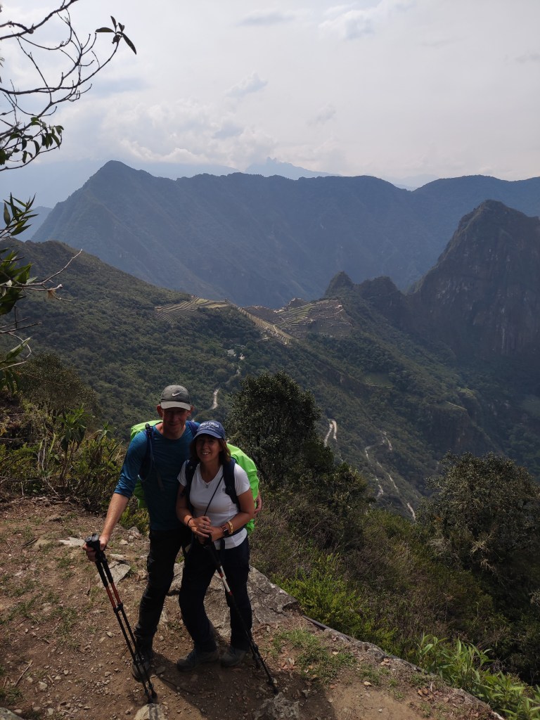Despite being on our own trek, we spoke to many interesting people on the way, most younger but some other oldies too. The camaraderie and generosity of the people we met was was wonderful with people sharing coca leaves, inhalers to open lungs as well as gummy sweets. The organisation of Alpaca Expeditions was great; we had a guide, Sergio, super chef, Ronnie, and 7 porters who carried 25kg on their backs along the trail past us everyday to set up camp for lunch, take it down , go past us again to set up camp again and make dinner. The wildlife wasn’t something we’d considered but in addition to the quite fantastic ruins, we spotted many humming birds, snakes, a wasp paralysed a tarantula to lay eggs inside it, so many butterflies and orchids. We were really glad to have booked a night in a hotel at the end of the trek before the rest of our tour of Machu Picchu and the climb up Huaynu Picchu. Best bed and shower ever! We had though this would be the hardest part but to actually both feel well it was a bit of a breeze😂. Hopefully, the pictures illustrate a little of our experience.