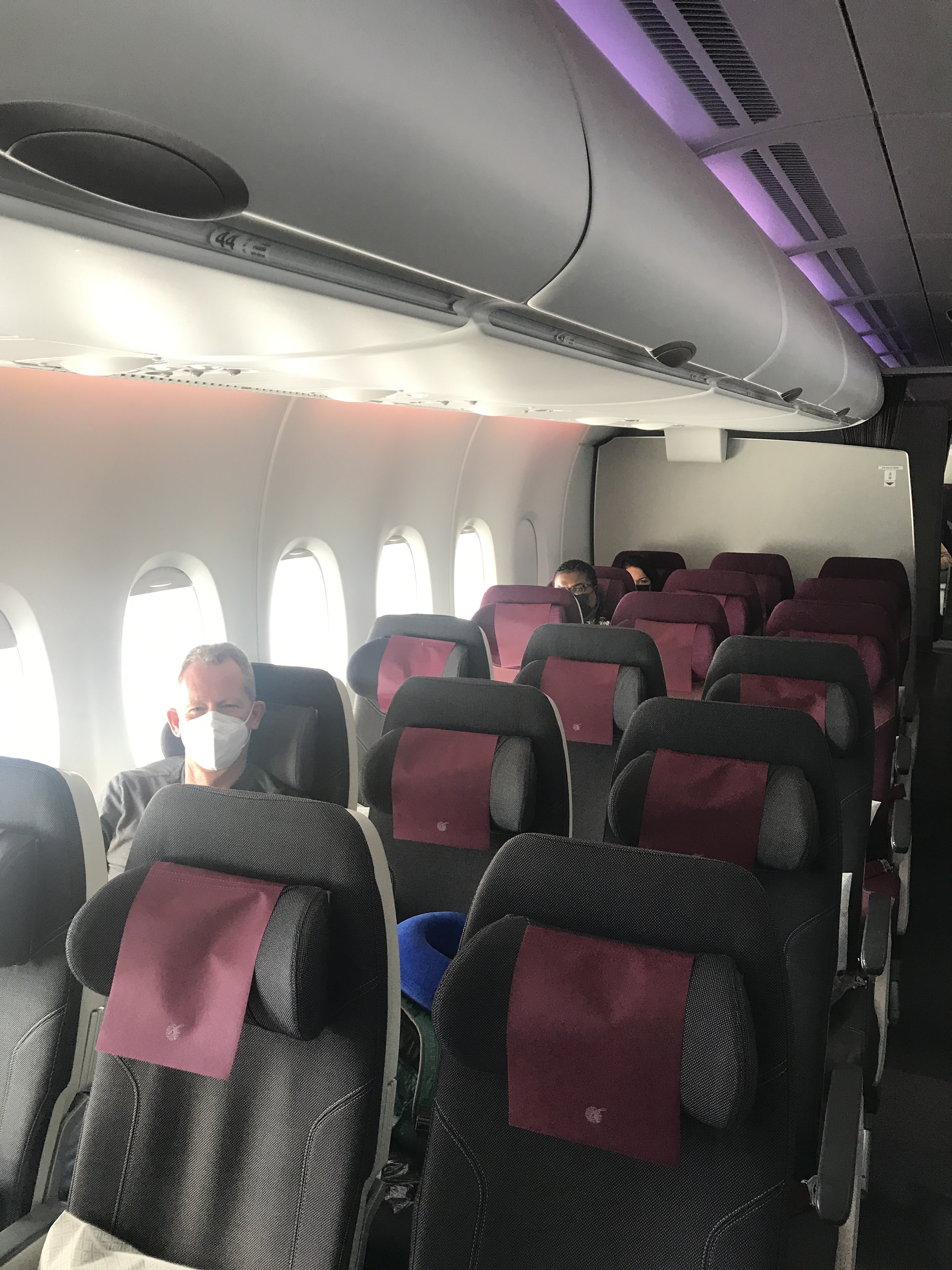 We flew with Qatar Airways who were just as good as we remembered. Great staff, food and a very empty plane for the first 6 hours.
