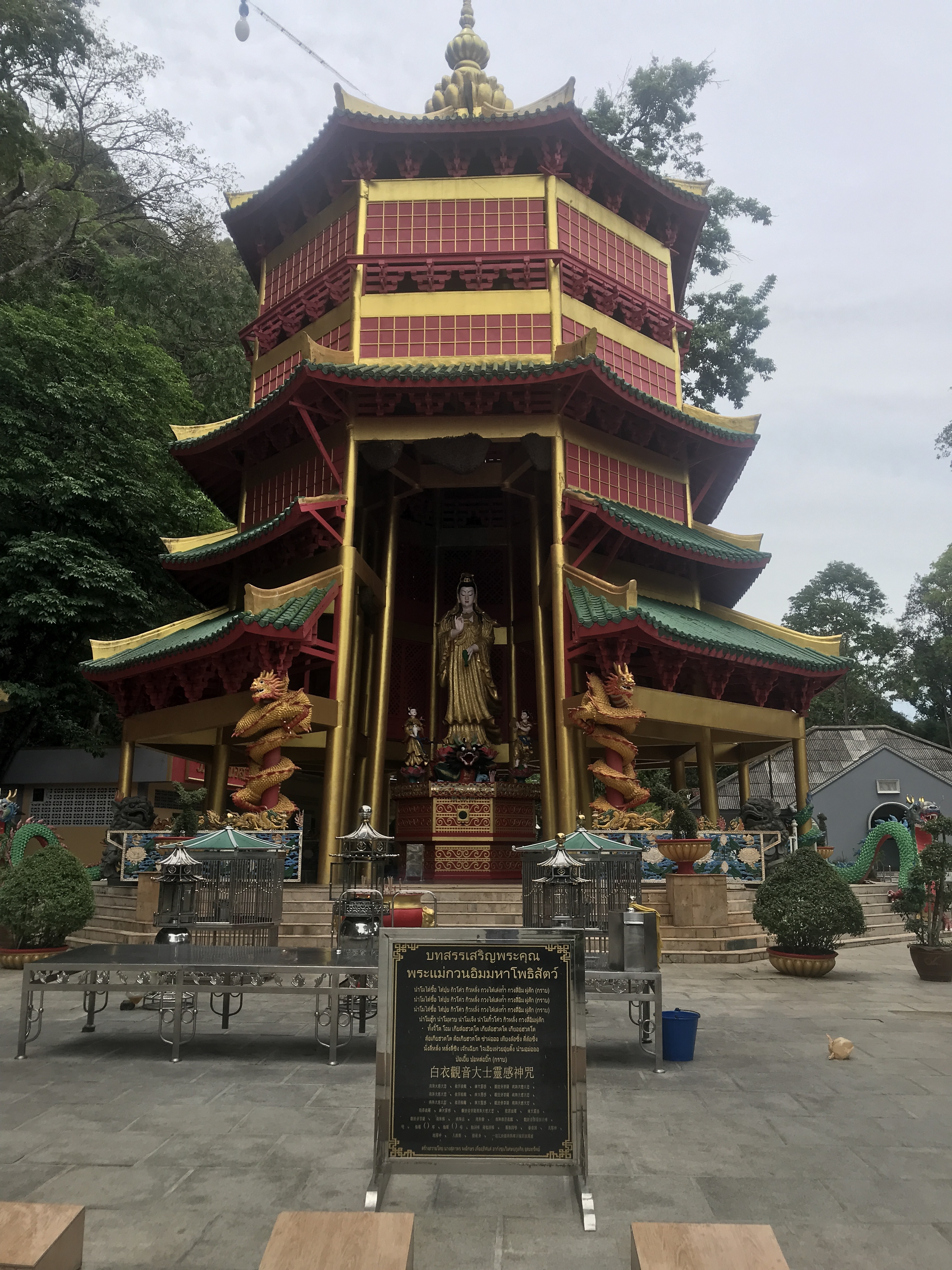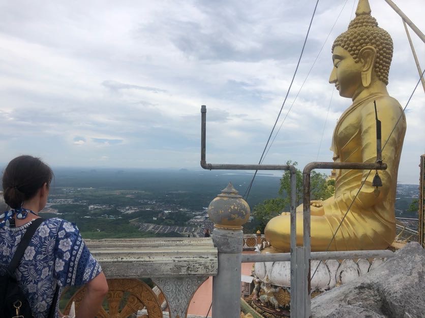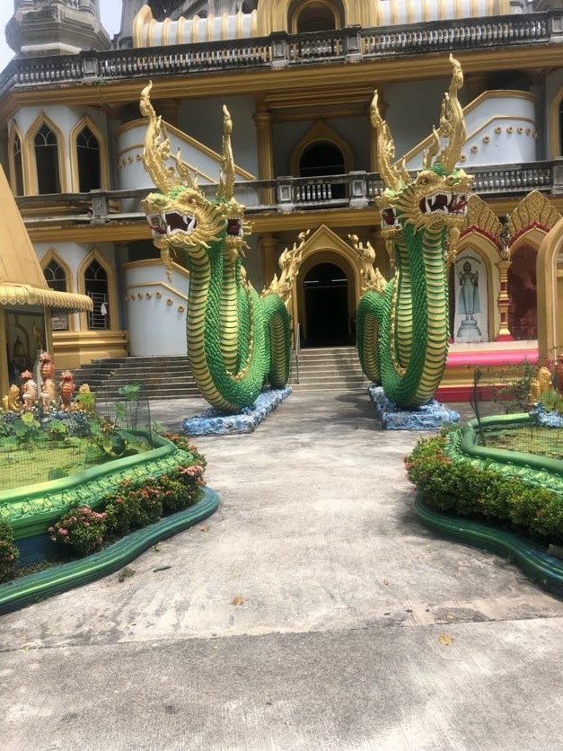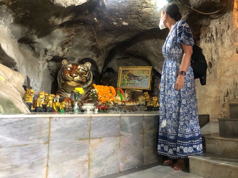 The following day, Kate had a lot of work to do (she is actually doing a masters..) so Callum and I headed to immigration to extend our visas for the extra month we need. Callum liked the sign on the entrance-we did wonder who the other parking was for. We were amazed how easy it all was and we were out in half an hour all sorted. It seemed a good idea to make use of the moped and go to the Tiger Temple as Kate wasn’t keen on going. We found it easily (thanks to Google maps) and, after a quick addition of a dress over my clothes, set off. The tiger is no longer at the temple as, unsurprisingly, it ran off when the monks arrived in 1975 but it was still pretty cool to see. For some unknown reason, we decided that it would be a good idea to climb the 1260 steps up to the viewpoint and the Buddha. The steps were of very different heights and widths( some thigh height) and definitely not easy in 32 degrees whilst wearing a dress. Not only did we have to stop A LOT (and we were not alone in that) but I had to sit down to just breathe several times. We really did think it had beaten me. After a bit of bad temperedness, we did actually make it to the top and it was worth it- as was the ice cream when got back to the bottom again.
