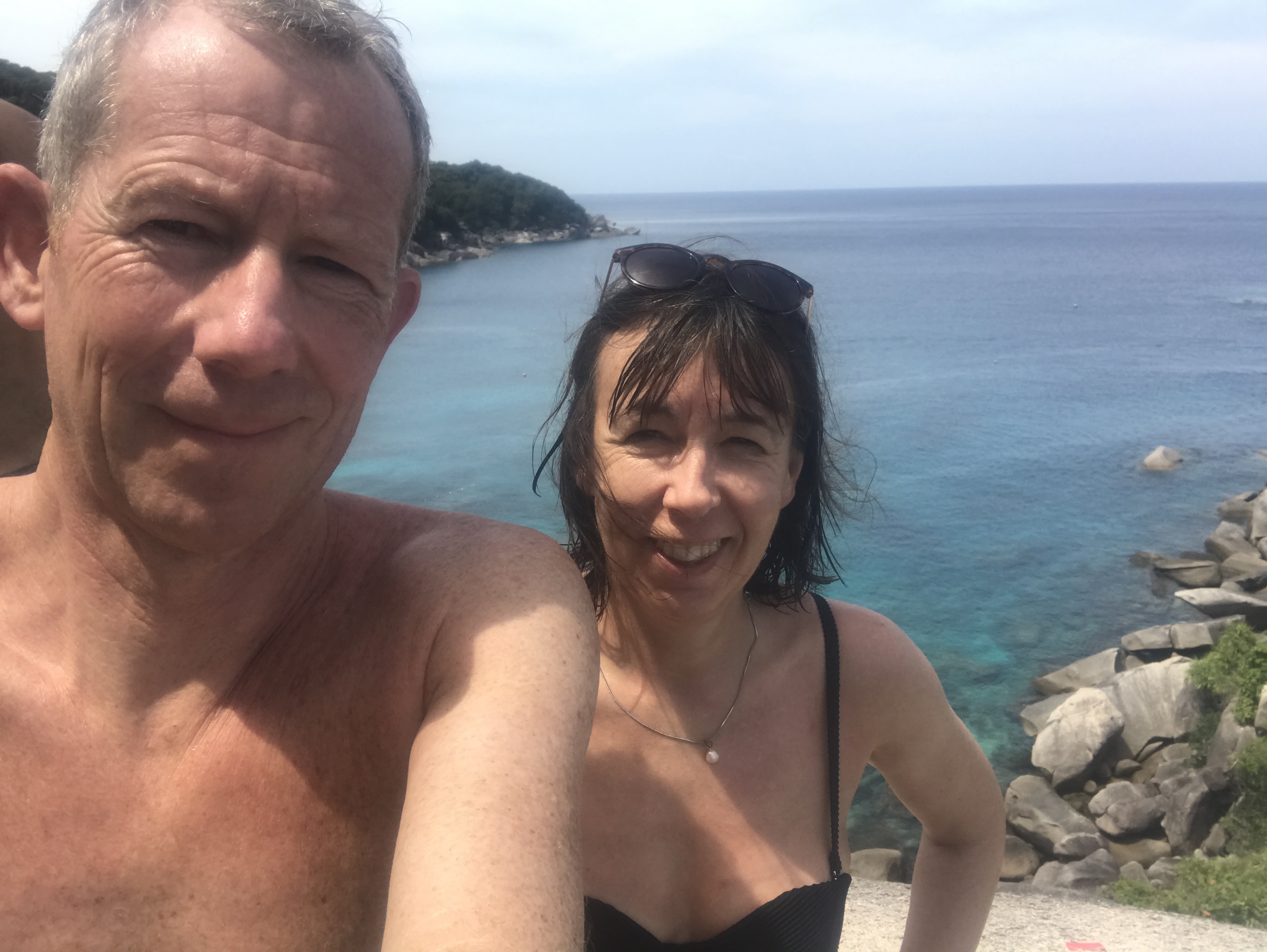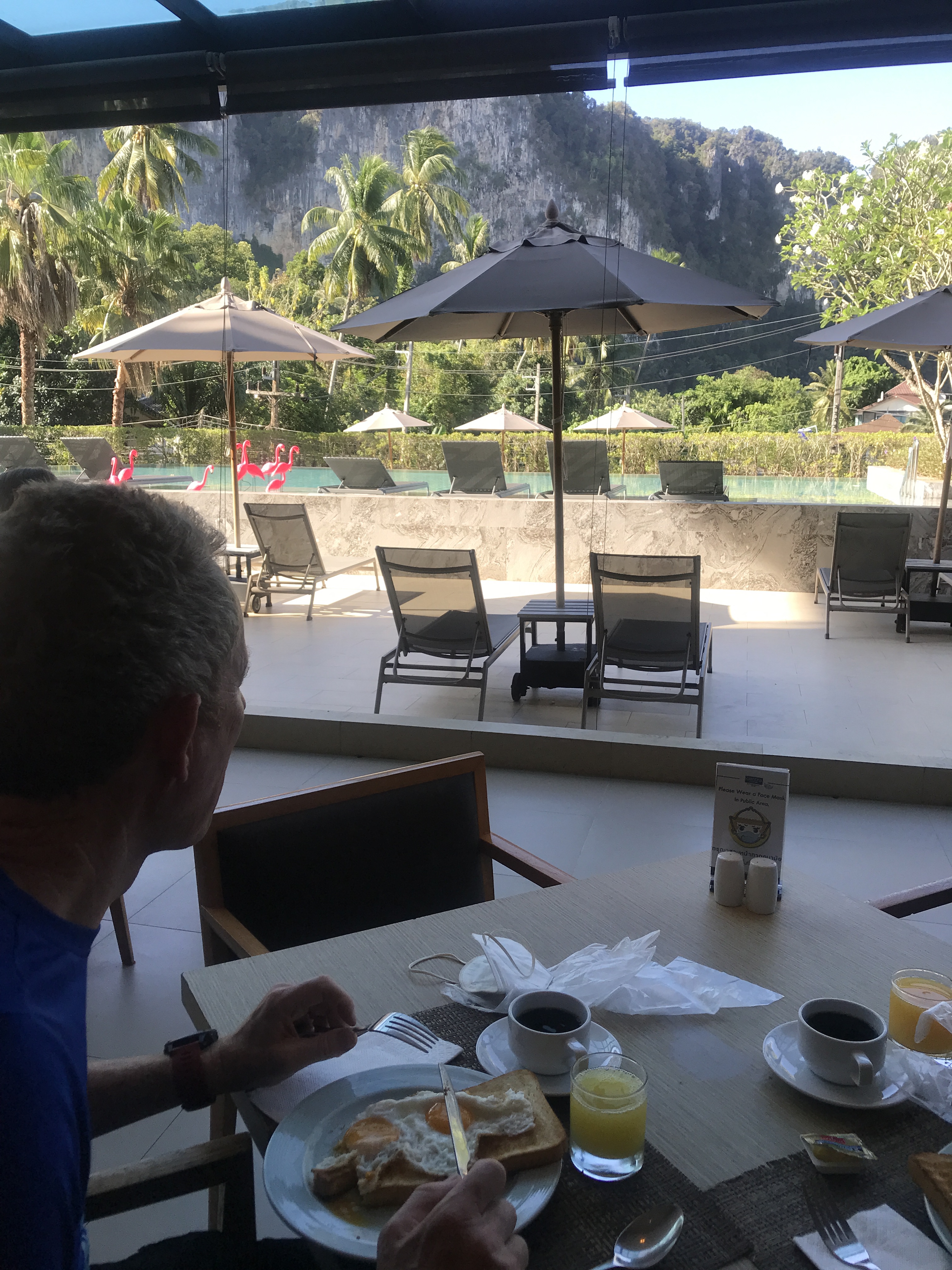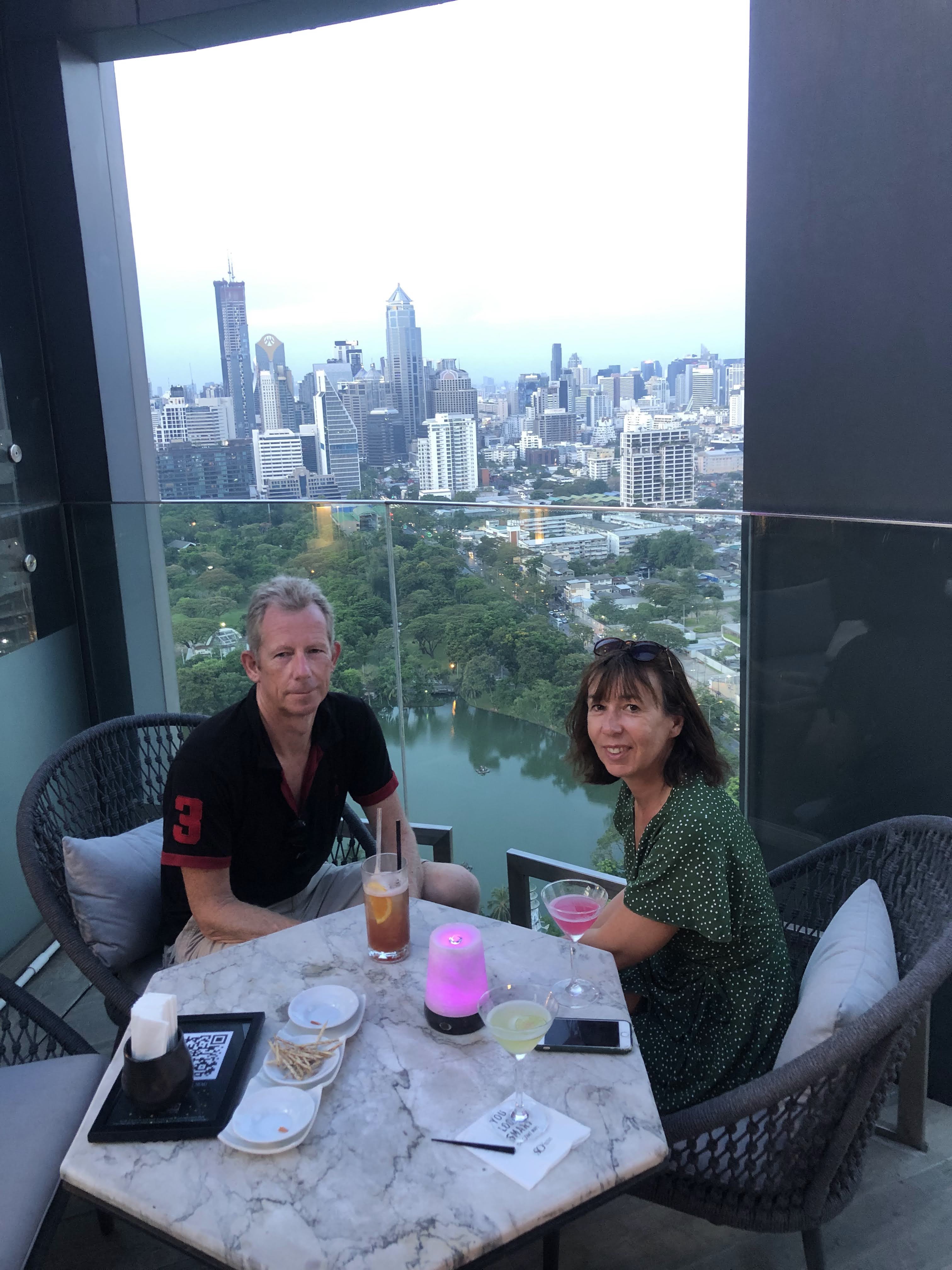 After a brief panic in Doha with 2 staff counting on their fingers the hours since our pcr test, our next flight to Phuket was full but, on landing, we were through the airport with the numerous tests and more invasive jabbing really quickly. We waved to Kate across the corridor and then holed up in our room for 5 hours awaiting test results in a thunderstorm. This was followed by a huge hug and cocktails.