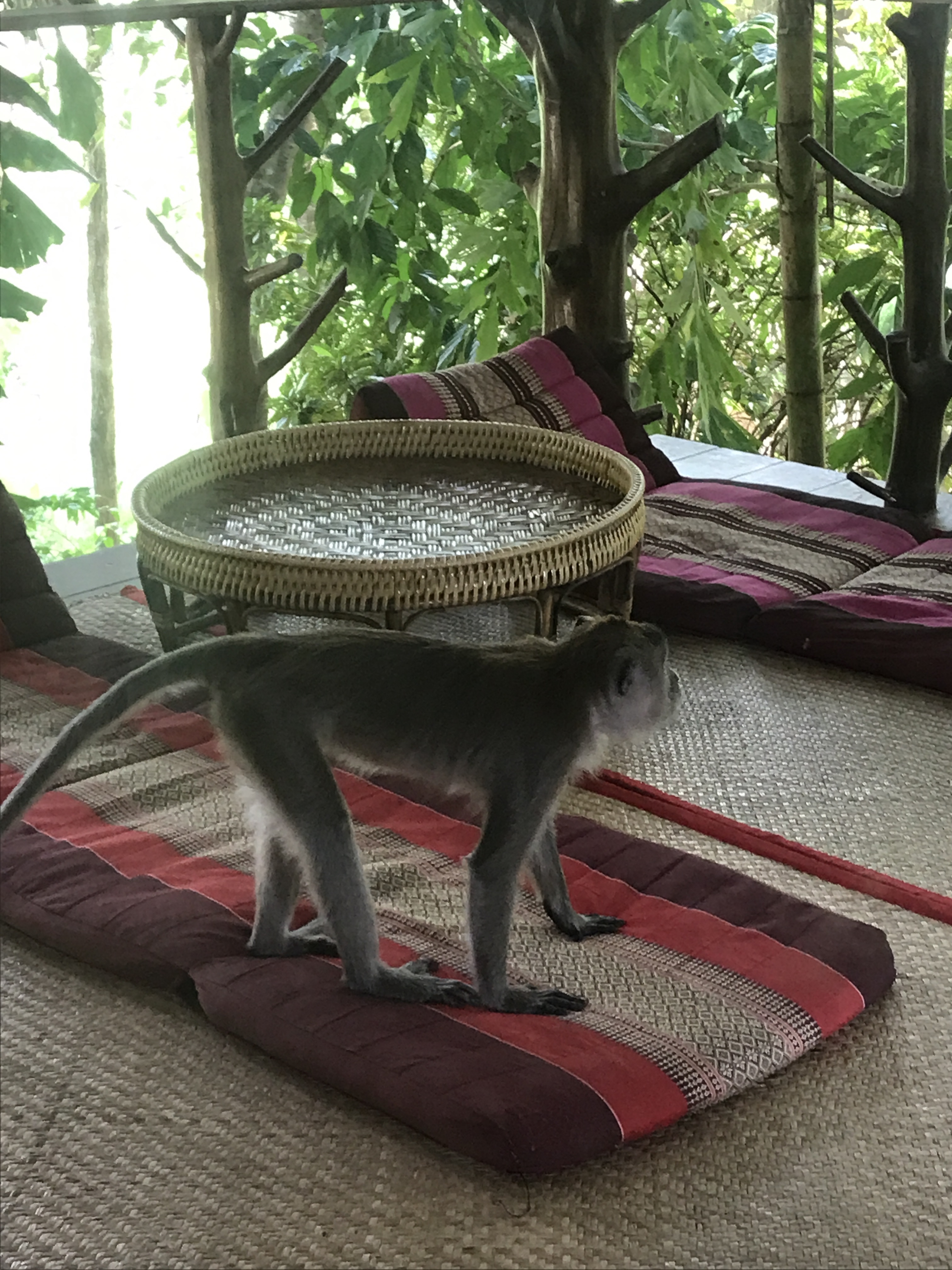 The hotel and lots of the places around were doing quite a lot of work getting the buildings and grounds back to a good condition as nature had taken over in some places. The animals were certainly a feature here as the monkeys were very visible wherever we drove. We passed lots of troops of monkeys crossing roads or sitting on tourists bikes and the cicadas took it to a whole different level so it was hard to hear each other at times (Callum might have thought that a blessing after 4 weeks!) Even at dinner, lizards ran over our feet on the beach and, on the way to eat, we saw a huge python lying happily on the track. We were convinced it was dead after seeing it in the same place and position for several days until Callum decided to annoy it with the torch and it moved. We moved quickly too!