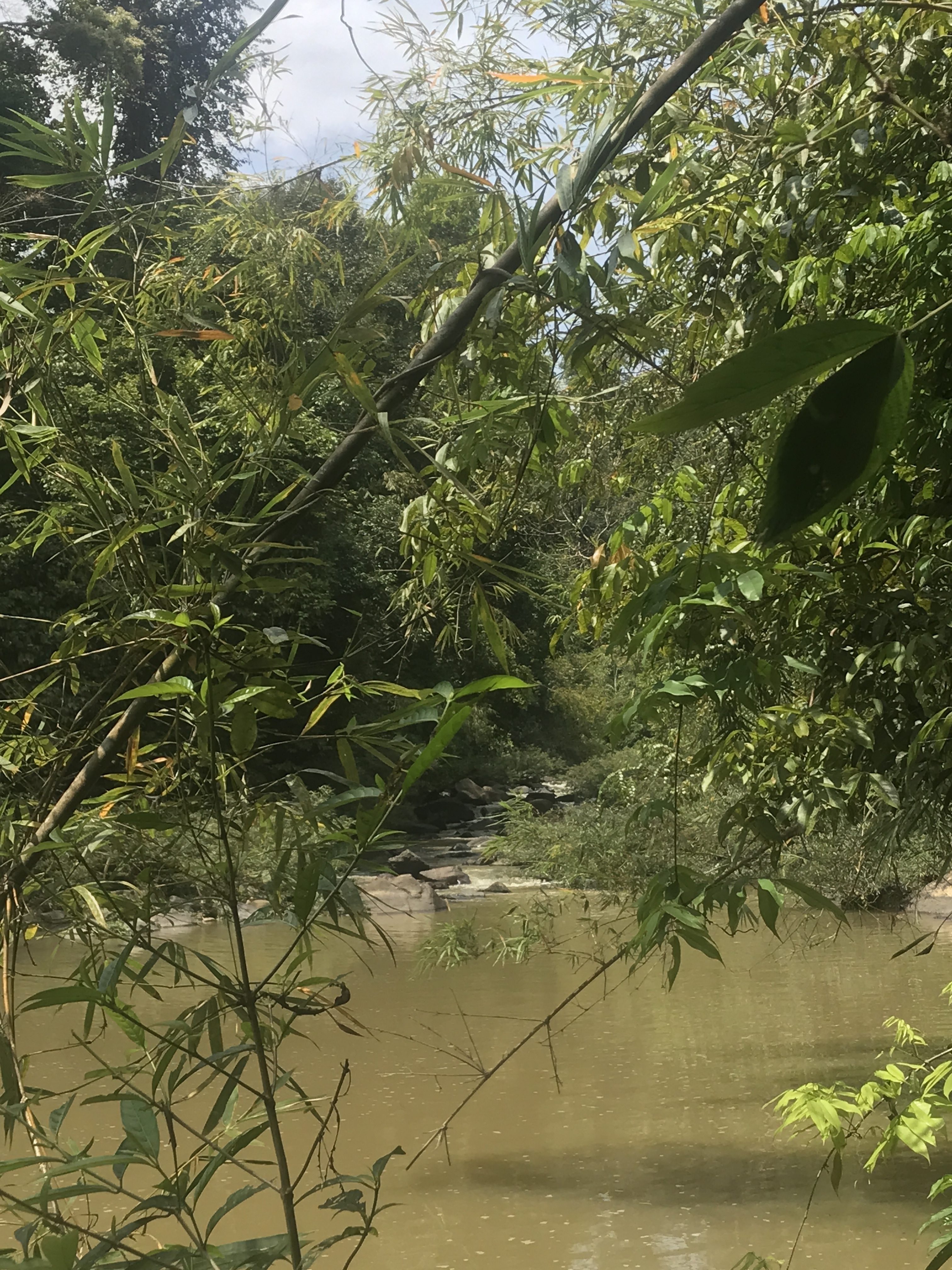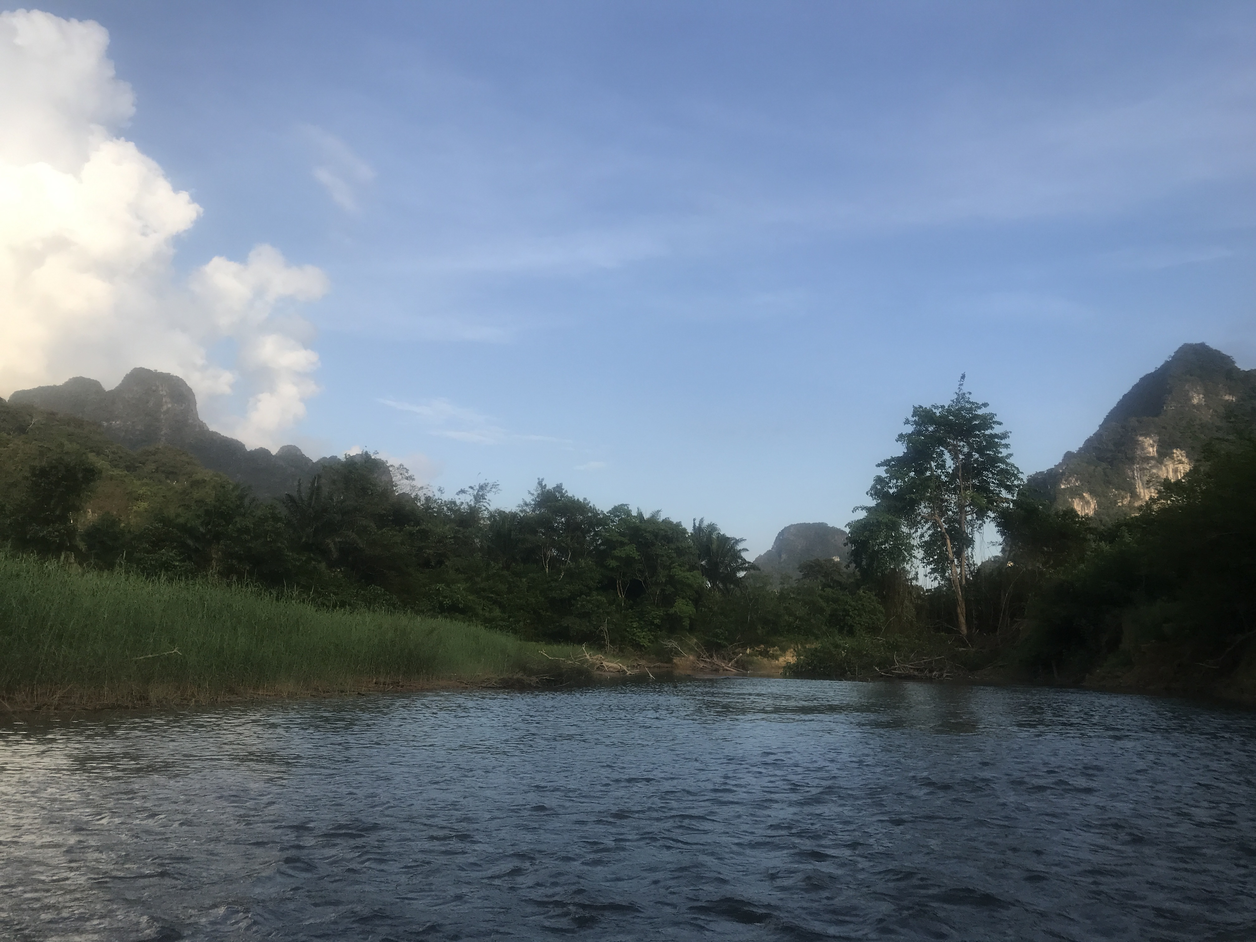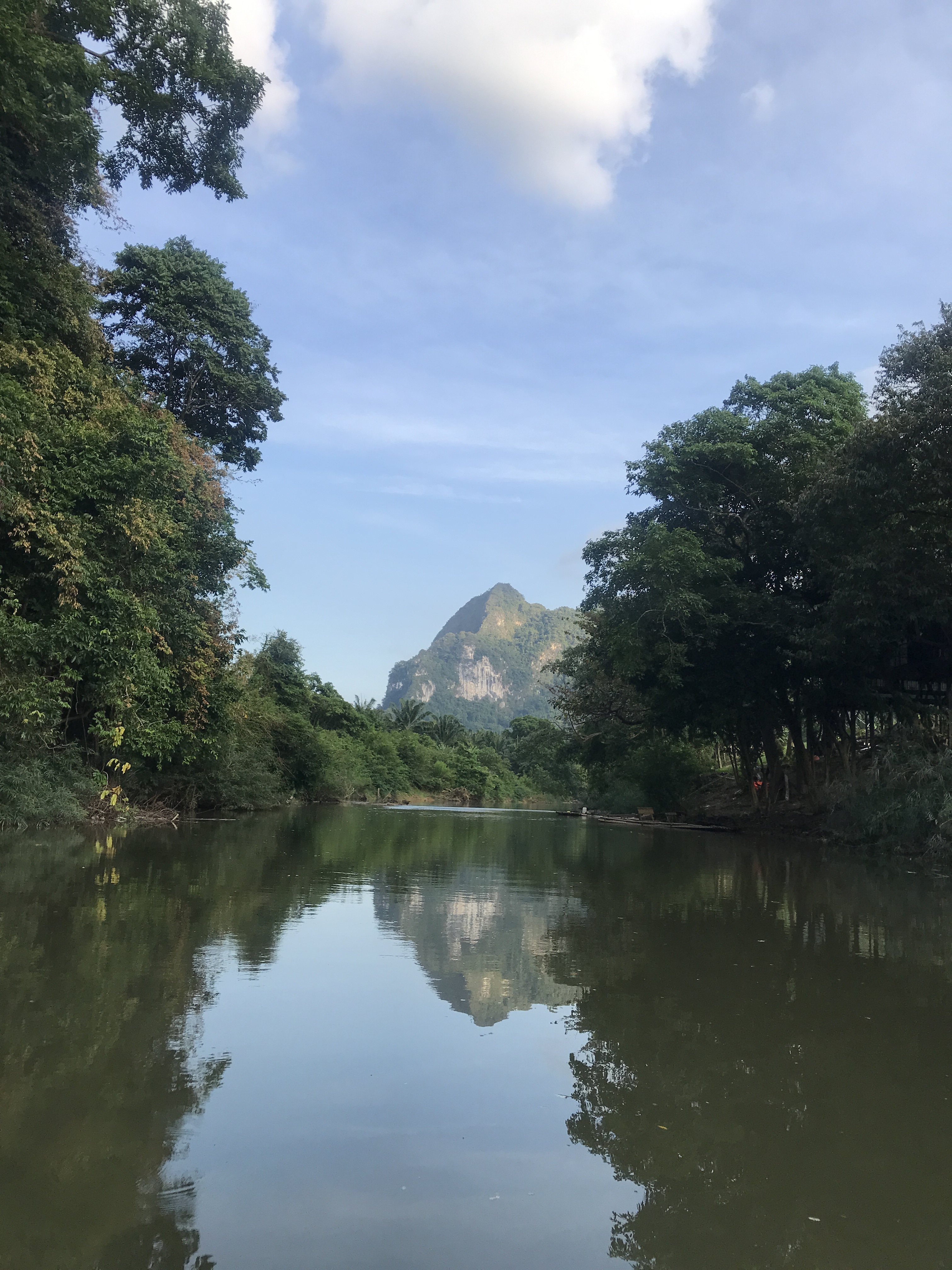 We were picked up in another songthaew and headed off . We had thought we were canoeing ourselves but it turned out we were just along for the ride. After initially been disappointed, it was actually rather lovely to be paddled along through the rainforest spotting the wildlife and greeting the locals playing in the river. We fed some protected fish and had coffee on the river bank in bamboo cups made on a fire Laet made there and then. (This was the closest Callum could get me to doing the survival experience overnight excursion). We saw kingfishers, heron like birds, heard the monkeys and saw a mangrove snake asleep in the tree above us All in all, a lovely few hours.