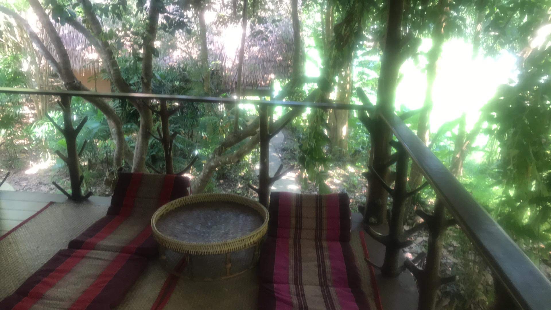Our next stop was travelling north to Khao Sok: an area inland with a huge national park. We had decided to try public transport and so got a songthaew (basically an open air truck) to the bus station only to find the bus station wasn’t open and the bus might come at “some point” during the day, not at the time on the timetable. After some negotiation with the driver, we agreed that he would drive us the hour trip there. It was pretty bumpy but it did mean that we got full view of the scenery on the way up which was pretty impressive. Anyway, we arrived much earlier than anticipated but the lovely people at the Khao Sok Paradise Resort were great about it and our treehouse was ready. We were given a short talk on the animals we might see including which ones were dangerous and then taken to our room where after a few minutes we were joined by a guest.